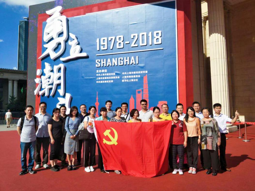 接着全体党员来到上海展览中心,参观了“勇立潮头--上海市庆祝改革开放40周年”大型主题展览。本次主题展览以时间线为轴,分为“序篇”、“负重前行谋突破”、“实现跨越当‘龙头’”、“阔步迈进新时代”、“改革开放再出发”等五个部分,以生动丰富的影像资料集中展示上海改革开放40年来的发展历程、巨大成就和宝贵经验。一组组对比数据、一段段历史视频、一幅幅发展规划图,让大家全面而又深入地了解上海一路走来的不平凡历程。《生长的天际线》短视频中,浦东陆家嘴高楼拔地而起,党员同志们由衷发出“一年一个样、三年大变样”、“上海不断长高、城市不断变美”的感慨。