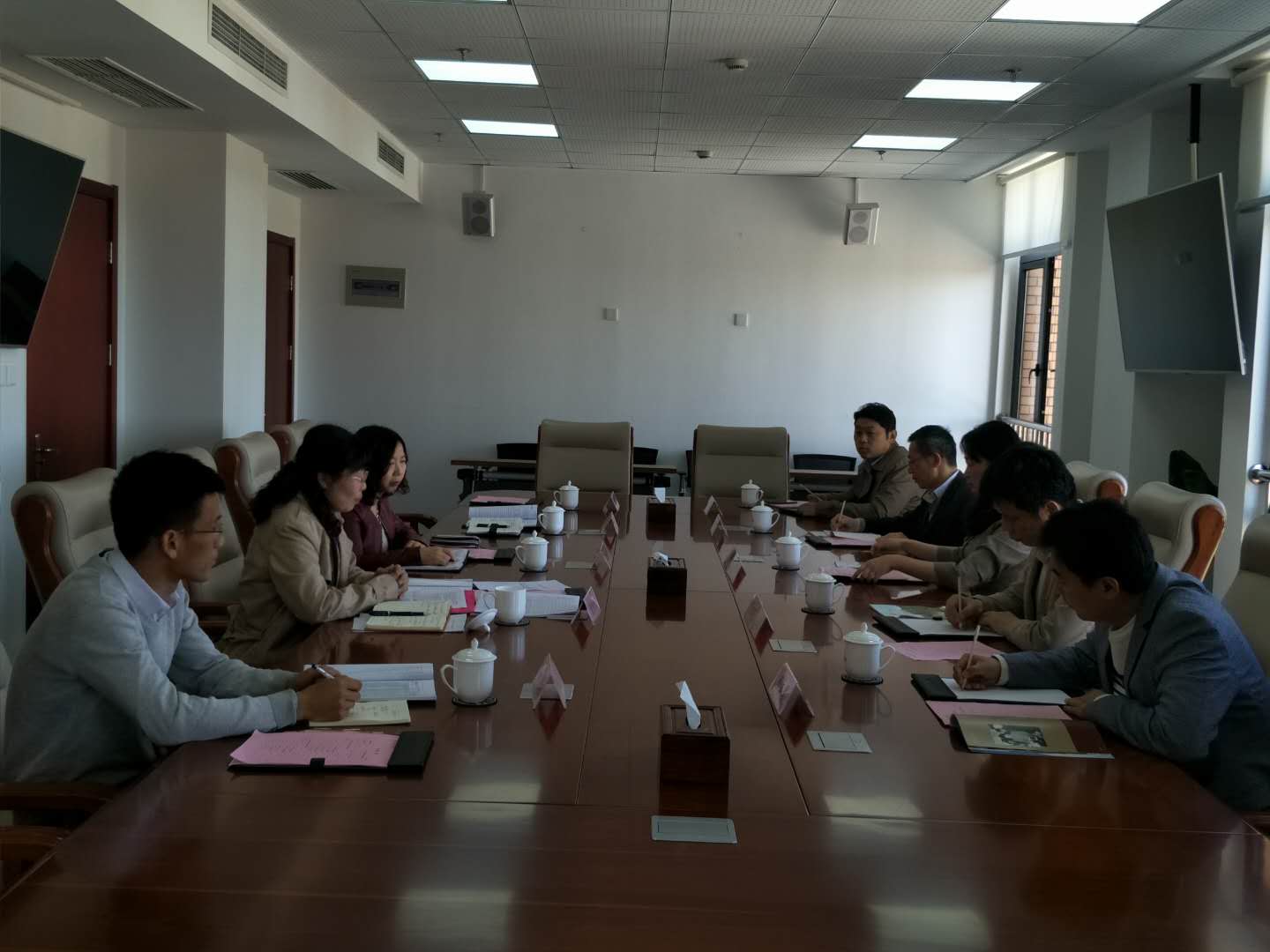 4月15日上午,上海工程技术大学数理与统计公司书记王勤、副经理张朝民、研究员夏金安等一行5人来公司文理教学部调研。文理教学部主任袁艳红、直属党支部书记王桂华、物理教研室主任柯磊等参加了调研交流活动。