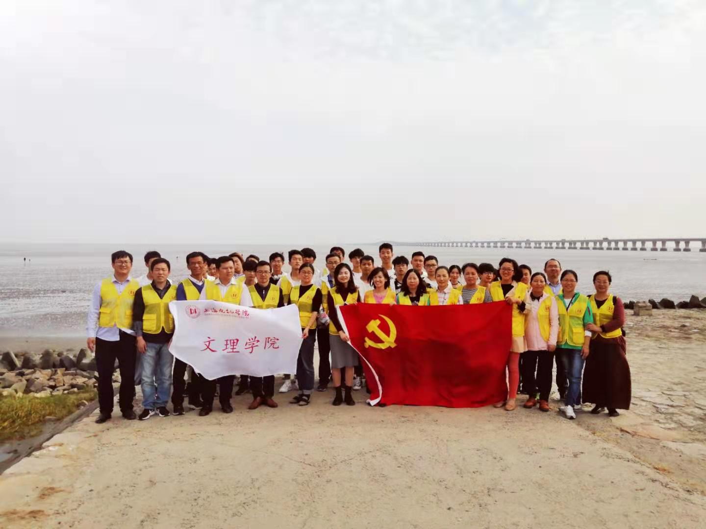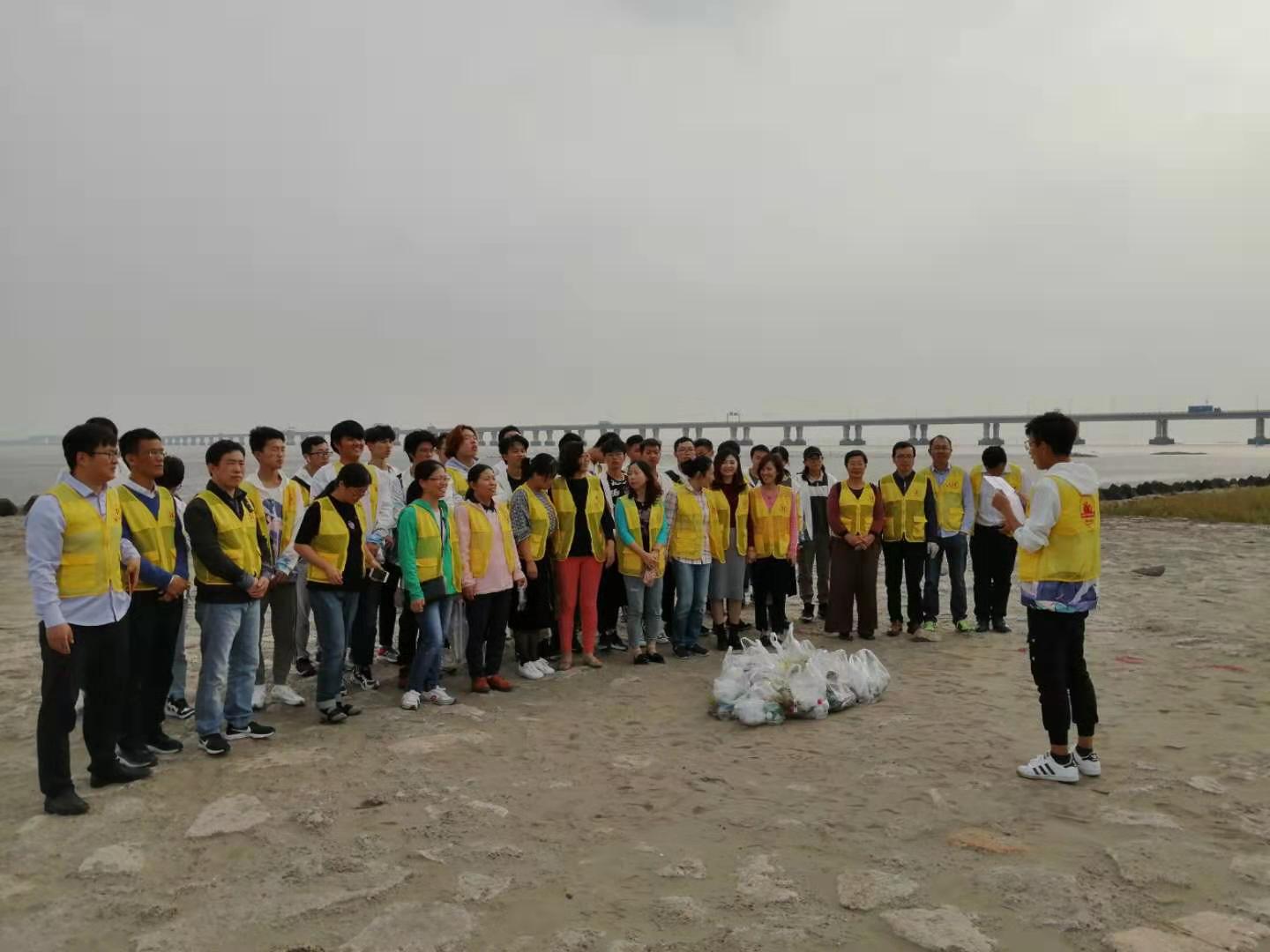 为深入开展“不忘初心、牢记使命”主题教育活动,10月25日下午,304am永利集团组织全体党团员开展了以“清洁海滩,倡导生态文明”为主题的环保志愿服务活动,为党团员提供了一次主题教育的实践机会。党员和团员青年们来到南汇新城“天空之境”清理海滩上的垃圾,并发起“减少海洋垃圾,保护海洋环境,建设生态文明”的倡议书。