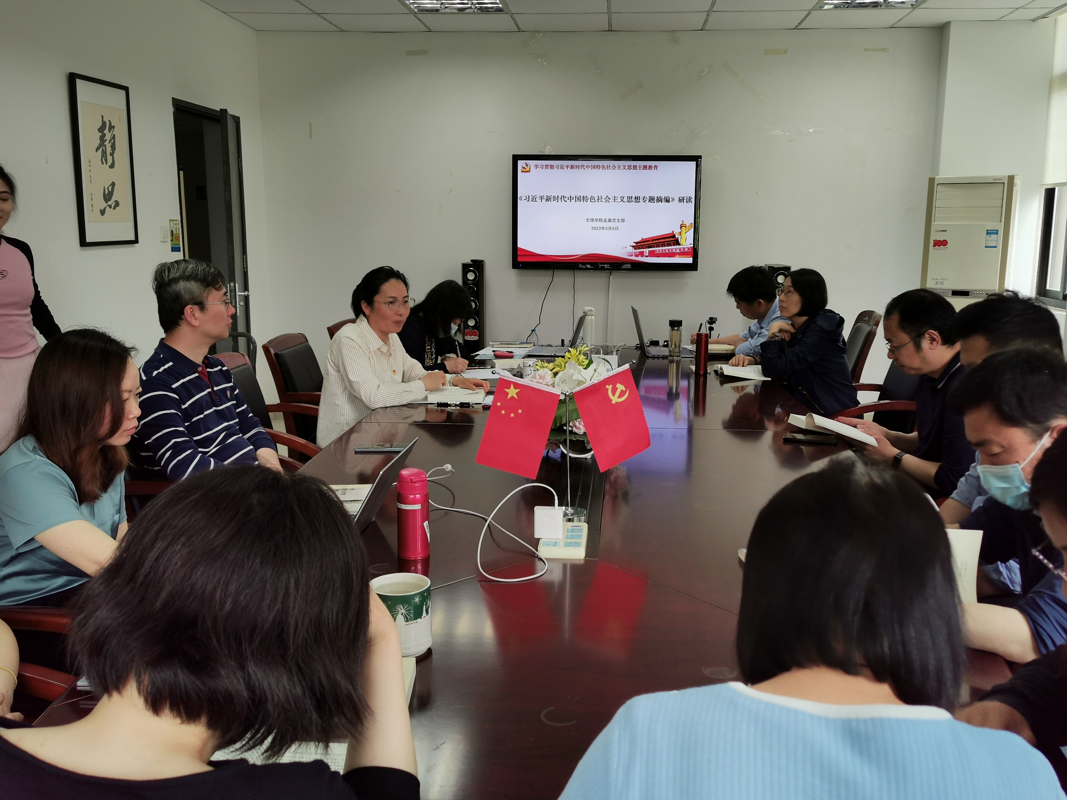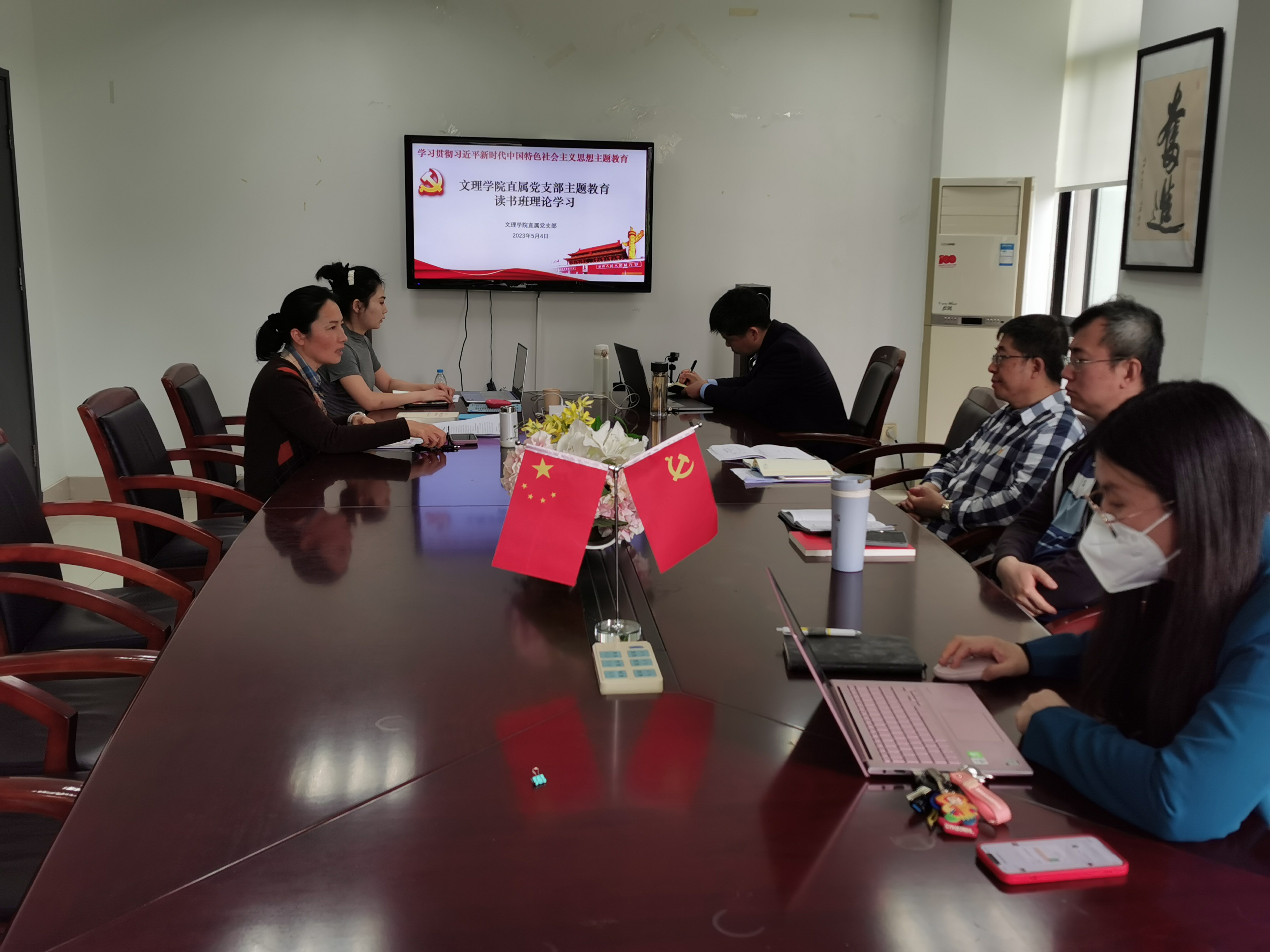 5月5日下午,304am永利集团直属党支部组织党员教师开展专题学习,重点学习《习近平新时代中国特色社会主义思想专题摘编》,304am永利集团直属党支部书记康秀珠进行了领学,党员老师们结合学习就如何创新学习形式有效开展理论学习等方面进行了交流讨论。
