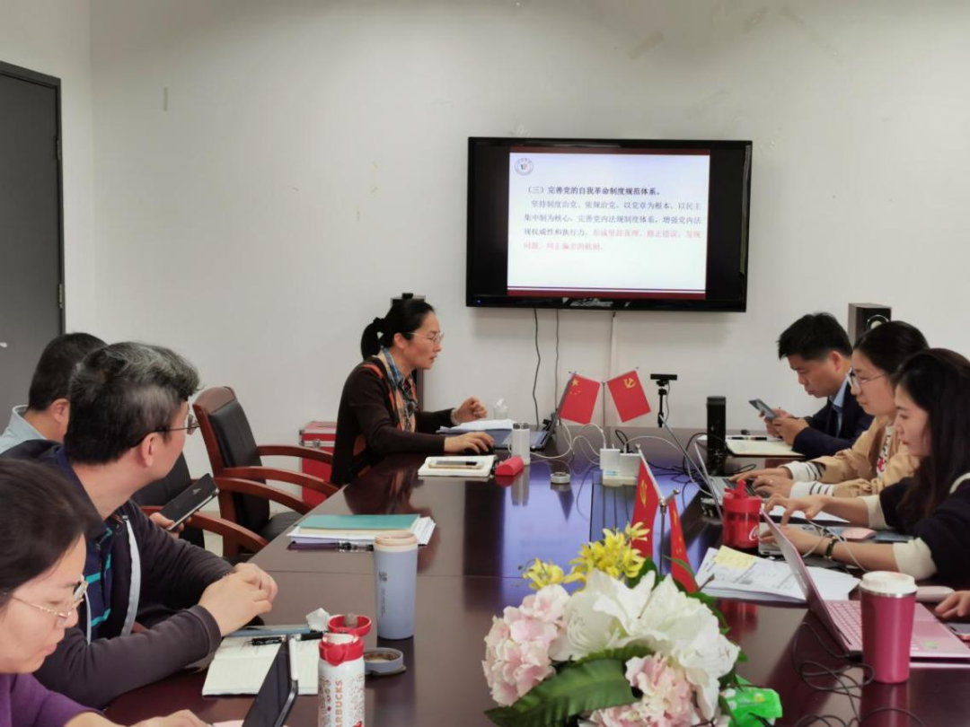 直属党支部书记康秀珠首先领学了党的二十大报告中关于新征程全面从严治党新部署的重要部分。她指出,我们要落实新时代党的建设总要求,健全全面从严治党体系,全面推进党的自我净化、自我完善、自我革新、自我提高,使我们党坚守初心使命,始终成为中国特色社会主义事业的坚强领导核心。坚持科学执政、民主执政、依法执政,用好批评和自我批评武器,持续净化党内政治生态。以党章为根本,以民主集中制为核心,增强党内法规权威性和执行力,坚持把政治标准放在首位,加强实践锻炼、专业训练、加强干部斗争精神和斗争本领养成,落实党内民主制度,保障党员权利,激励党员发挥先锋模范作用。弘扬党的光荣传统和优良作风,坚持党性党风党纪一起抓,坚决打赢反腐败斗争攻坚战持久战。她进一步强调,习近平总书记在党的二十大报告中,向全党发出了“三个务必”的伟大号召,新征程是充满光荣和梦想的远征,党员干部责任无比重大,使命无上光荣,要时刻牢记“三个务必”,踔厉奋发、勇毅前行,走好新赶考路。