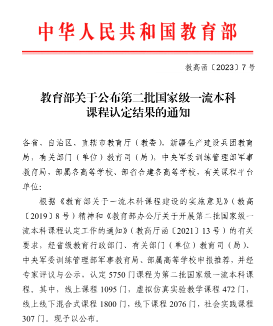 近日,教育部公布了第二批国家级一流本科课程认定结果,公司4门课程成功入选。其中,公司袁艳红老师《大学物理》获批线下一流课程。公司将继续对标国家级和上海市级一流课程建设要求,加大课程建设支持力度充分发挥已有国家级一流本科课程的示范引领作用,推动本科公司产品工作再上新台阶。