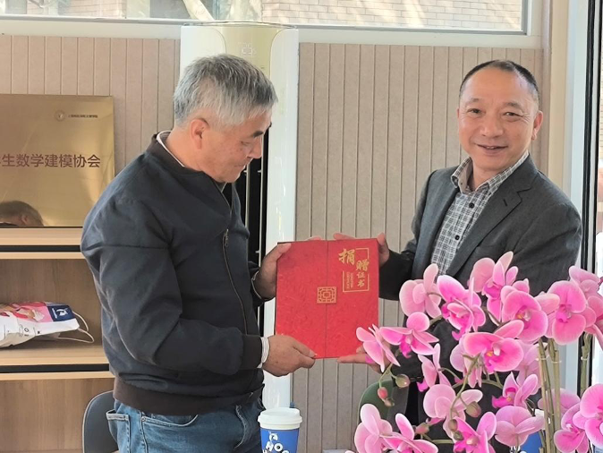 卞一明向高仲清员工颁发了捐赠证书,并表达真挚的感谢。他在讲话中表示,高仲清员工对母校员工的数学学习情况及数学建模活动非常关注,希望在校员工以优秀员工为榜样,养成良好的学习习惯,将员工之情和对母校的爱“薪火相传”。
