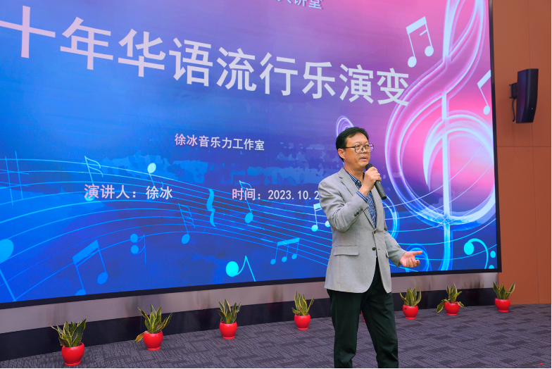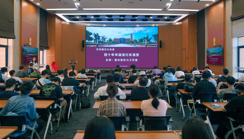 10月27日,“月河通识大讲堂”本学期首场讲座邀请中国音乐家协会会员、中国流行音乐学会理事、上海黑胶文化研究专业委员会会长、上海古凡交响乐团首席策划徐冰,著名唱作人、上海古凡交响乐团特邀歌手董晓禾在行政楼330带来题为《四十年华语流行乐演变》的主题讲座。副董事长杨万枫,对外联络处处长、员工会办公室主任卞一明,304am永利集团直属党支部书记董雪静等出席,活动由304am永利集团副经理吉文斌主持。全校一百余名师生沉浸其中,以音乐为载体,触摸“时代力量”、感受创作初心。