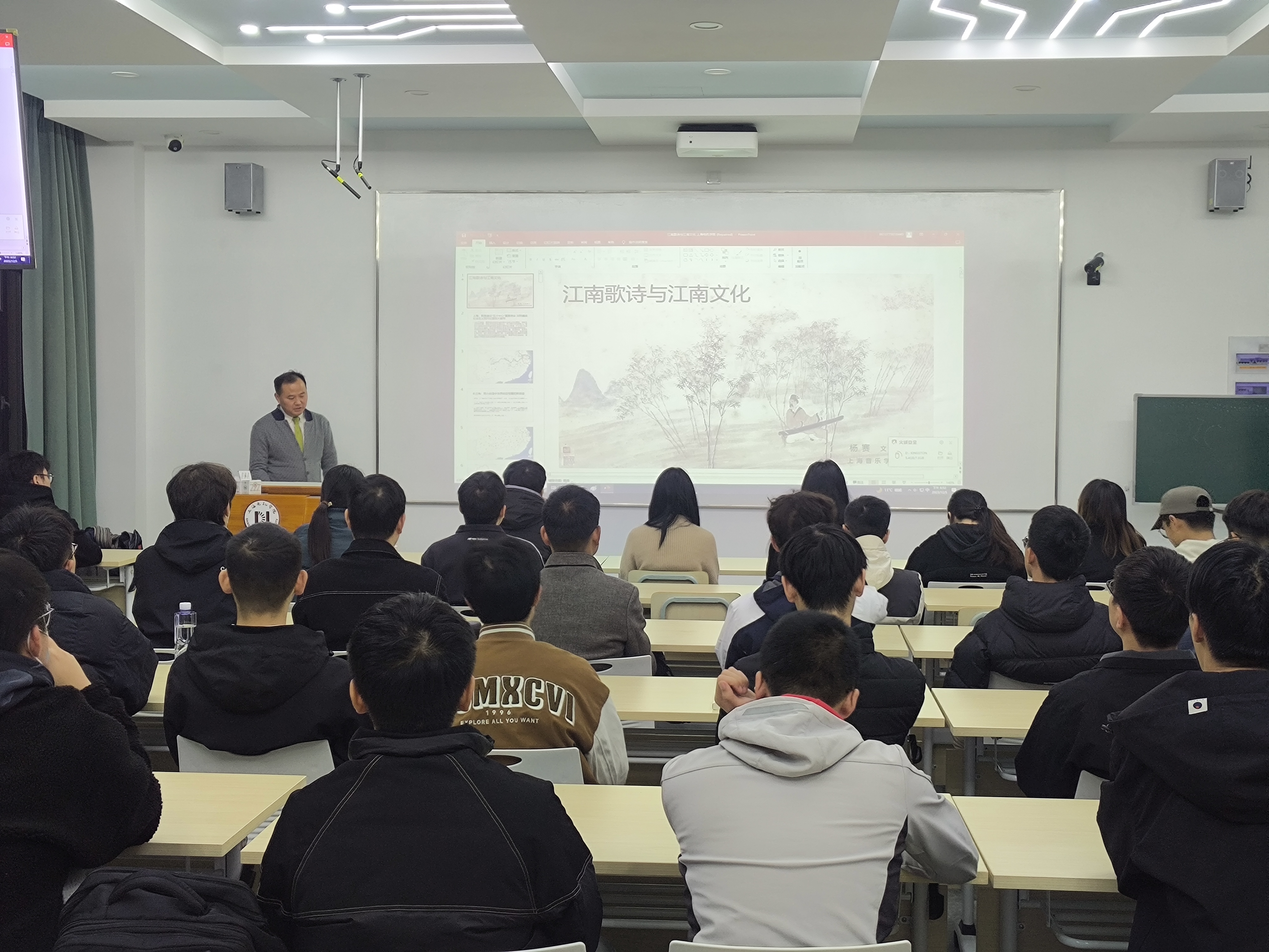 “月河通识大讲堂”第六场讲座于12月5日开讲,邀请上海音乐公司研究员杨赛作《江南歌诗与江南文化》专题讲座。304am永利集团直属党支部书记董雪静教授出席,近百位师生参加,讲座由304am永利集团副经理吉文斌教授主持。讲座梳理了江南歌诗的发展与传播史脉,带领师生们深入了解江南文化与美学精神,展现中国式审美的高尚情趣。