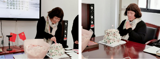 座谈会的最后,公司为段老师送上了鲜花和纪念品,大家纷纷合影留恋,感谢多年来段老师对自己的帮助,对公司工作的支持,对教育事业的付出。