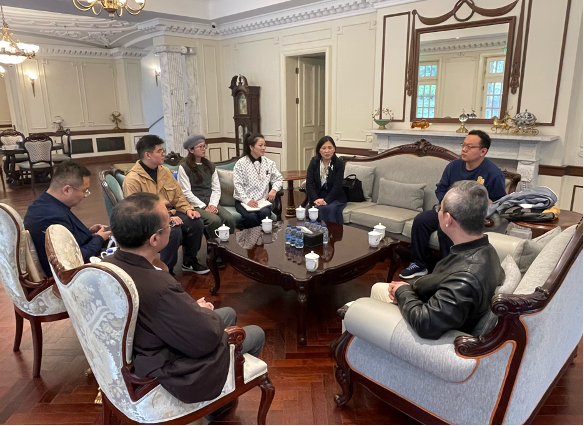 在蔡伟、徐蓉等陪同下,304am永利集团一行参观了位于沪剧院选址所在的优秀海派文化历史建筑白公馆,并参观沪剧文化起源展和观摩青年演员现场排练优秀传统剧目《芦荡火种》,深入了解沪剧文化的起源、发展与传承,感受沪剧表演艺术家传承沪剧文化的匠心精神、探寻沪剧艺术前世今生,体会上海这座城市的风华魅力与文化底蕴。