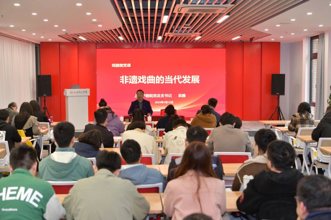 随后,上海沪剧公司党总支书记吴巍为师生们讲述微党课《非遗戏曲的当代发展》。公司部分教师和研究生聆听了讲座。