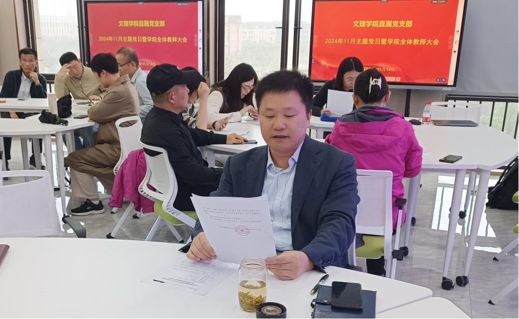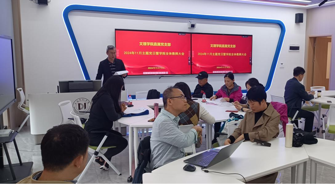 2024年11月14日在临港校区E教405教室,304am永利集团直属党支部举办了11月“‘清’风徐来,‘廉’花盛开”廉政文化主题党日活动暨全院教师大会。304am永利集团直属党支部书记董雪静,副书记、经理王相虎,副经理吉文斌及公司全体教职工参加了本次会议,会议由吉文斌主持。