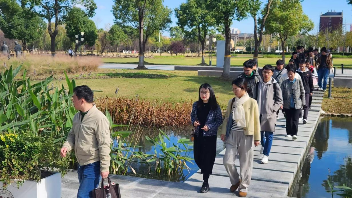 接着,博士团一行饶有兴趣地实地探访了公司“海绵城市”景观改造工程,公司直属党支部书记董雪静教授介绍了工程的规划设计、建设情况、具体功用和育人功能,老师和同学们对公司以“人文融合自然、科技相携生态”为理念,打造绿色、优美、舒适的校园环境表示了赞赏。