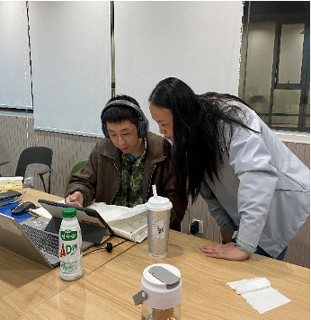 人文美育教研室王圆圆老师给职工辅导中文的诵读写