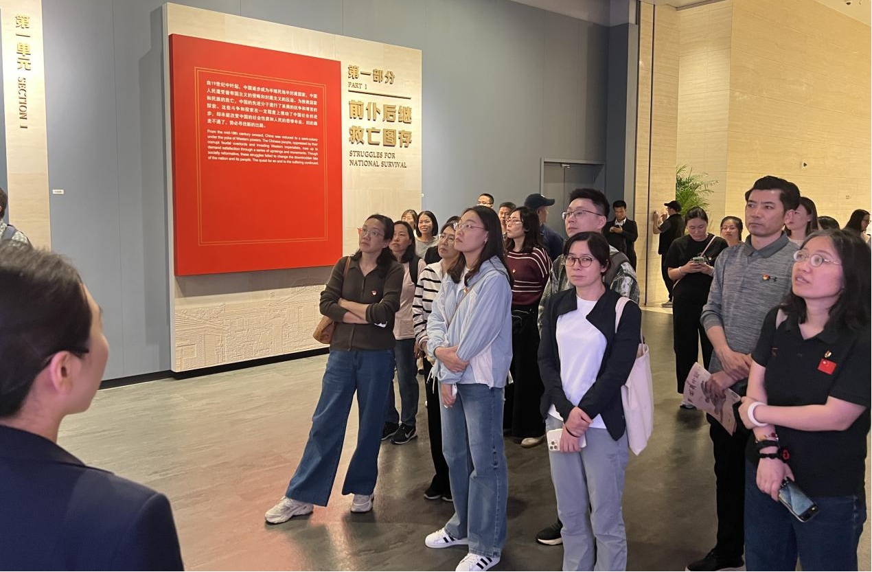 随后,党员们依次参观“伟大的开端——中国共产党创建历史陈列展”和“热的血——纪念五卅运动100周年文物史料专题展”。在“前赴后继 救亡图存”等五大陈列板块前,党员们通过珍贵文物、历史影像和现场讲解,深入学习党的创建历程与革命先辈的奋斗精神,深刻感悟中国共产党诞生的历史必然性和开天辟地的伟大意义。在“五卅运动”专题展中,一件件史料生动再现了百年前反帝爱国运动的壮阔场景,激发了党员们的爱国情怀与使命担当。