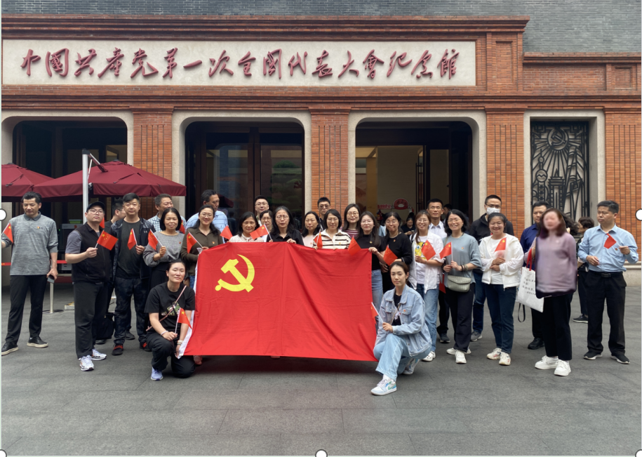 活动最后,全体党员在一大会址纪念馆前深情唱响《我爱你中国》,并合影留念。此次主题党日活动将政治理论学习与现场教学相结合,既增进了支部间交流协作,又通过沉浸式党史学习教育引导党员深刻领会中央八项规定精神内涵,牢记初心使命,以更饱满的热情和更坚定的信念投身教育事业。