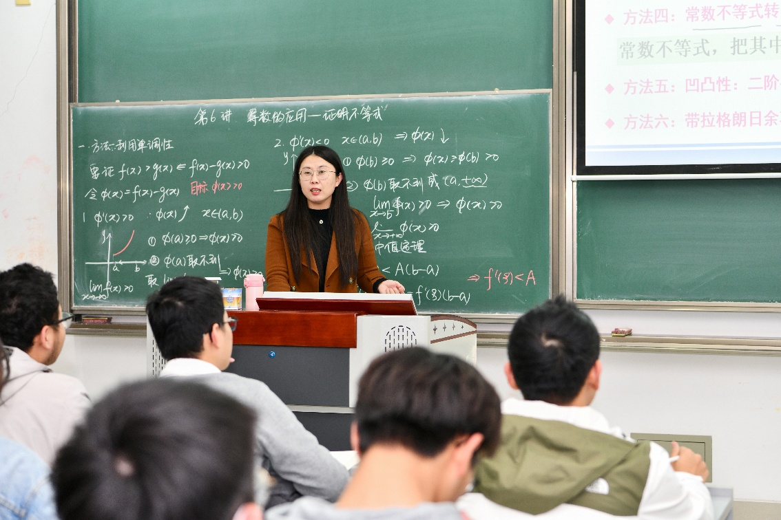 《高等数学A》课程不仅是校级课程思政示范课程,还被认定为上海高校一流本科课程,课程团队负责人武文佳老师深受员工喜爱,被亲切地称为“武姐姐”。员工张乐天(电子2412)评价道:“武姐姐是我大学的引路者,她是叩开我大学高数殿堂的第一缕晨曦,她就像高数世界的“翻译官”,把冷冰冰的数学符号变成了通俗易懂的故事。岂不闻光阴如快马加鞭,武姐姐的高数课堂和她的付出一直令我们动容,让我们不仅掌握了数学知识及数学在专业中的应用,也让我们对老员工活充满了期待与向往,更让我觉得岁月静好,人间值得……”谢伟林同学(车辆2412)也表示:“武姐的高数课堂不是一味灌输枯燥的知识,而是用一个个引人入胜的应用案例和故事引入数学知识,巧妙利用多媒体技术和现代信息技术融入课堂,注重启发我们的思维。她逐步引导我们理解数学知识并掌握数学应用,让我们徜徉在数学的海洋,让我们知道高等数学在生活中、在工程中是无处不在的,让我们领略到数学的魅力,爱上高数爱上电机。”